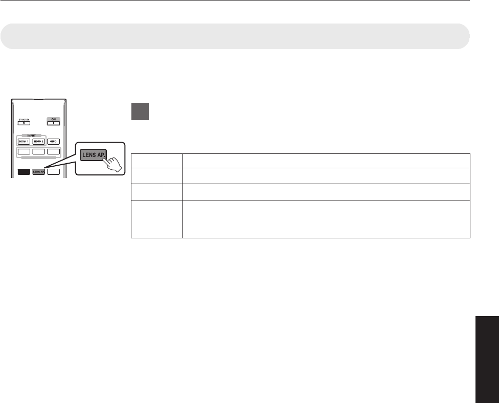 Mit jedem Druck der Taste [LENS AP.] wird die Einstellung in Reihenfolge