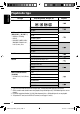 Mise en/hors service l’attente de réception TA/PTY Attente de réception TA FRANÇAIS Appuyez sur Indicateur Attente de réception PTY Indicateur Voir page 25. pour mettre en service. L’appareil commute temporairement sur S’allume l’annonce d’informations routières (TA), s’il y en a une, à partir de n’importe quelle source autre que AM. Le volume change sur le niveau de volume TA préréglé si le niveau actuel est inférieur au niveau préréglé (voir page 25).