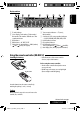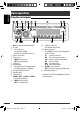 ENGLISH Display window 1 Tr (track) indicator 2 Source display / Track number / Folder number / 6 Tuner reception indicators—ST (stereo), Disc number / Title number / PBC indicator / Time countdown indicator 3 DISC indicator 4 RDS indicators—AF, REG, TP, PTY 5 Playback mode / item indicators— RND (random), (disc), (folder), RPT (repeat) 7 Sound mode (c-EQ: custom equalizer) indicators MO (monaural) —CLASSIC, HIP HOP, JAZZ, ROCK, POPS, USER 8 LOUD (loudness) indicator 9 EQ (equalizer) indicator p Disc