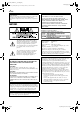 Filename [XVC27U_03Safety.fm] Masterpage:Right-No-Heading XVC27U_01.book Page 5 Wednesday, January 7, 2004 10:48 AM EN DSSTM is an official trademark of DIRECTV, Inc., a unit of GM Hughes Electronics. DISH NetworkTM is a trademark of Echostar Communications Corporation. 5 7. DO NOT place any naked flame sources, such as lighted candles, on the apparatus. 8. AVOID violent shocks to the unit during transport. MOISTURE CONDENSATION ● Manufactured under license from Dolby Laboratories.