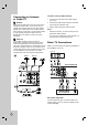 How to set the DVD+VCR’s RF output channel Optional TV Connections 1. When the DVD+VCR is turned off, press and hold CH (+/-) on the front panel for more than five seconds. “RF03” or “RF04” appears in the display window. These connections support only DVD playback. The tuner and VCR still output through the RF.OUT (R) or DVD/VCR OUT (A, V) jacks. 2. Press CH (+/-) to change the RF output channel (RF03 or RF04). Tune the TV to this channel. S-Video connection 3. Turn off the DVD+VCR.