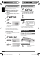 ! • See also “General settings — PSM” on pages 12 – 14. When a station is received, searching stops. To stop searching, press the same button again. 1 2 Start searching for a station. ENGLISH Basic settings To tune in to a station manually In step ! above... 1 1 Canceling the display demonstrations Select “DEMO,” then “DEMO OFF.” 2 Setting the clock Select “CLOCK H” (hour), then adjust the hour. Select “CLOCK M” (minute), then adjust the minute. 3 2 Select a desired station frequency.
