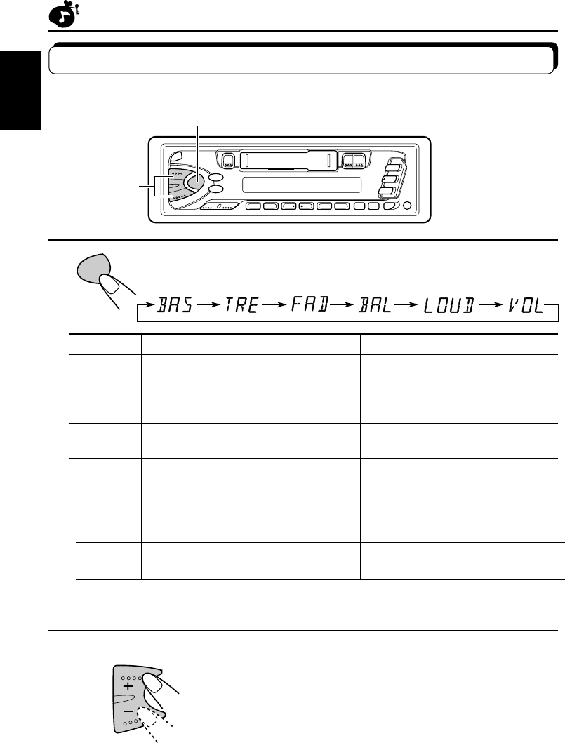 BAS Adjust the bass –6 (min.) — +6 (max.)