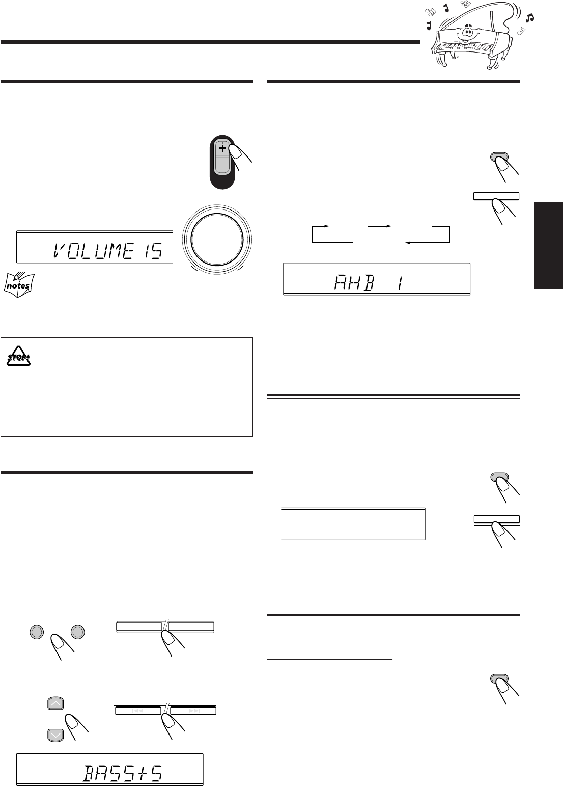 “AHB OFF” vises på displayet. Endvidere slukkes BASS-
