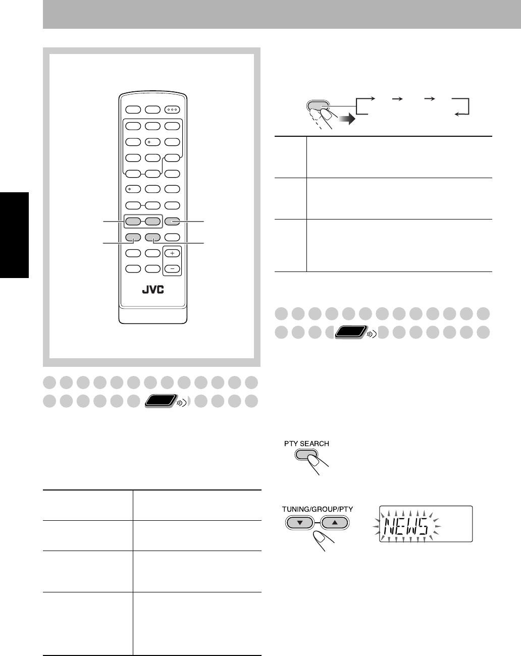zenders (zie bladzijde 9) opzoeken door de PTY-codes te