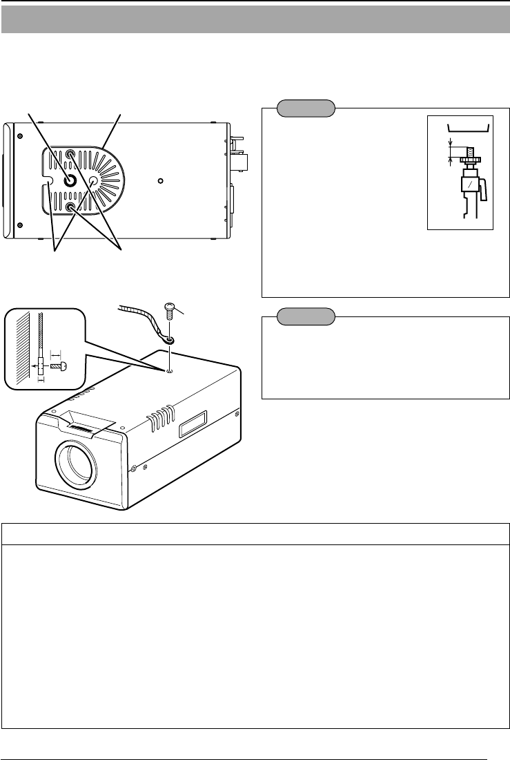 • When the camera is attached to a fixer or a pan/tilt unit, use the holes for fall prevention to