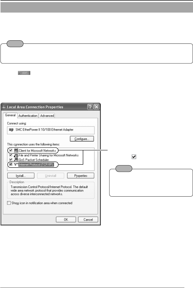With Windows XP, follow the procedure below to set the IP address.