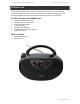 Portable CD Player with AM/FM Radio V10M10_IM_EN_04242009 USER SAFETY GIUDE IMPORTANT SAFETY PRECAUTIONS – CONTINUED 14. OBJECT and LIQUID ENTRY - Care should be taken so that objects do not fall and liquids are not spilled into the device’s openings. 15. CARTS AND STANDS - The appliance should be used only with a cart or stand that is recommended by the manufacturer. An appliance and cart combination should be moved with care.
