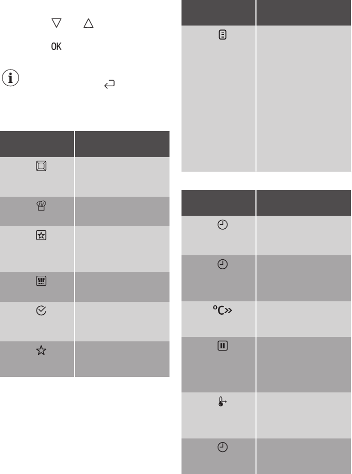 - Rekommendationer för ugnens specialfunktioner för uppvärmning