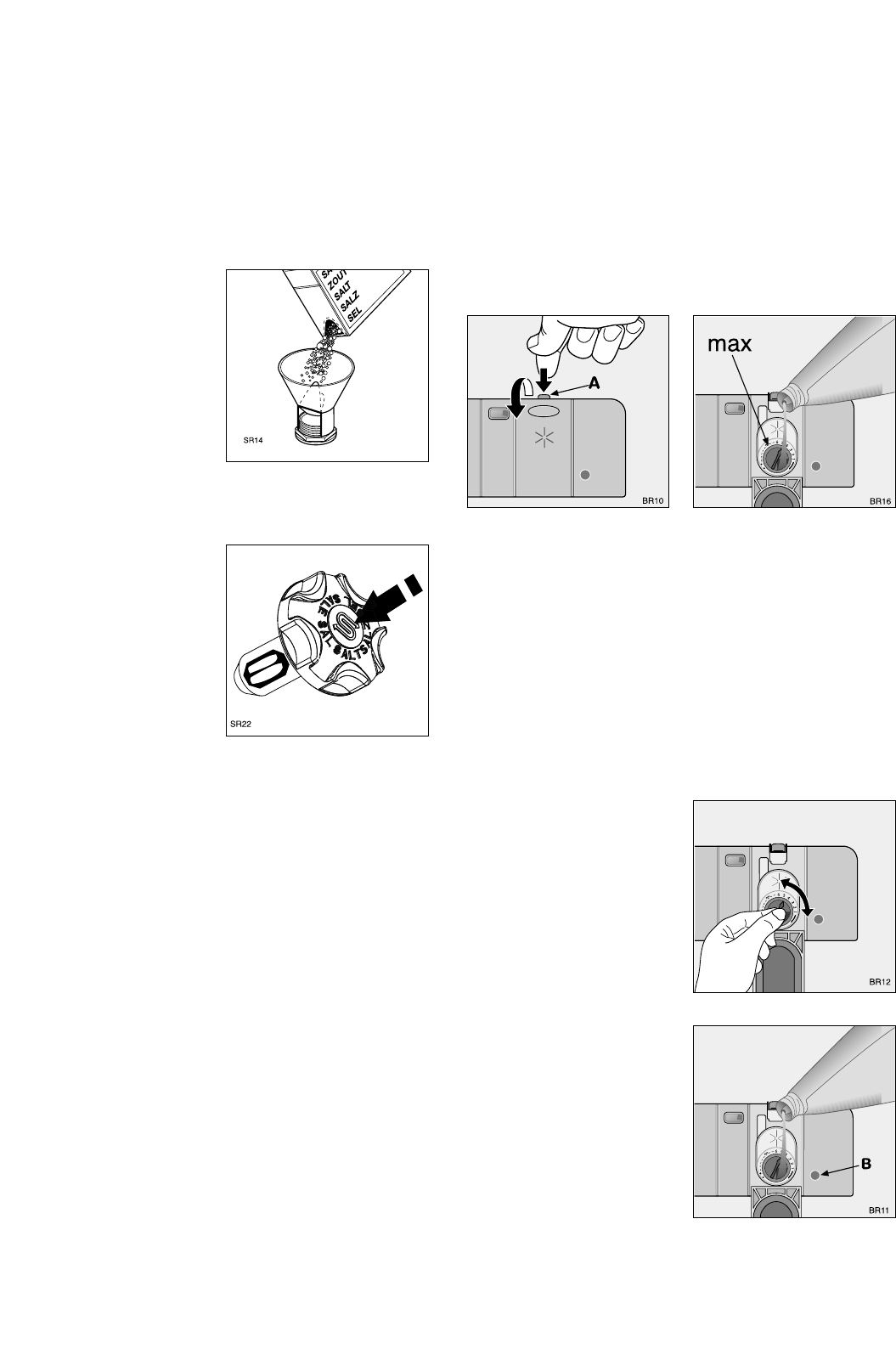 1. Draai de dop van het zoutreservoir 90° tegen de wijzers