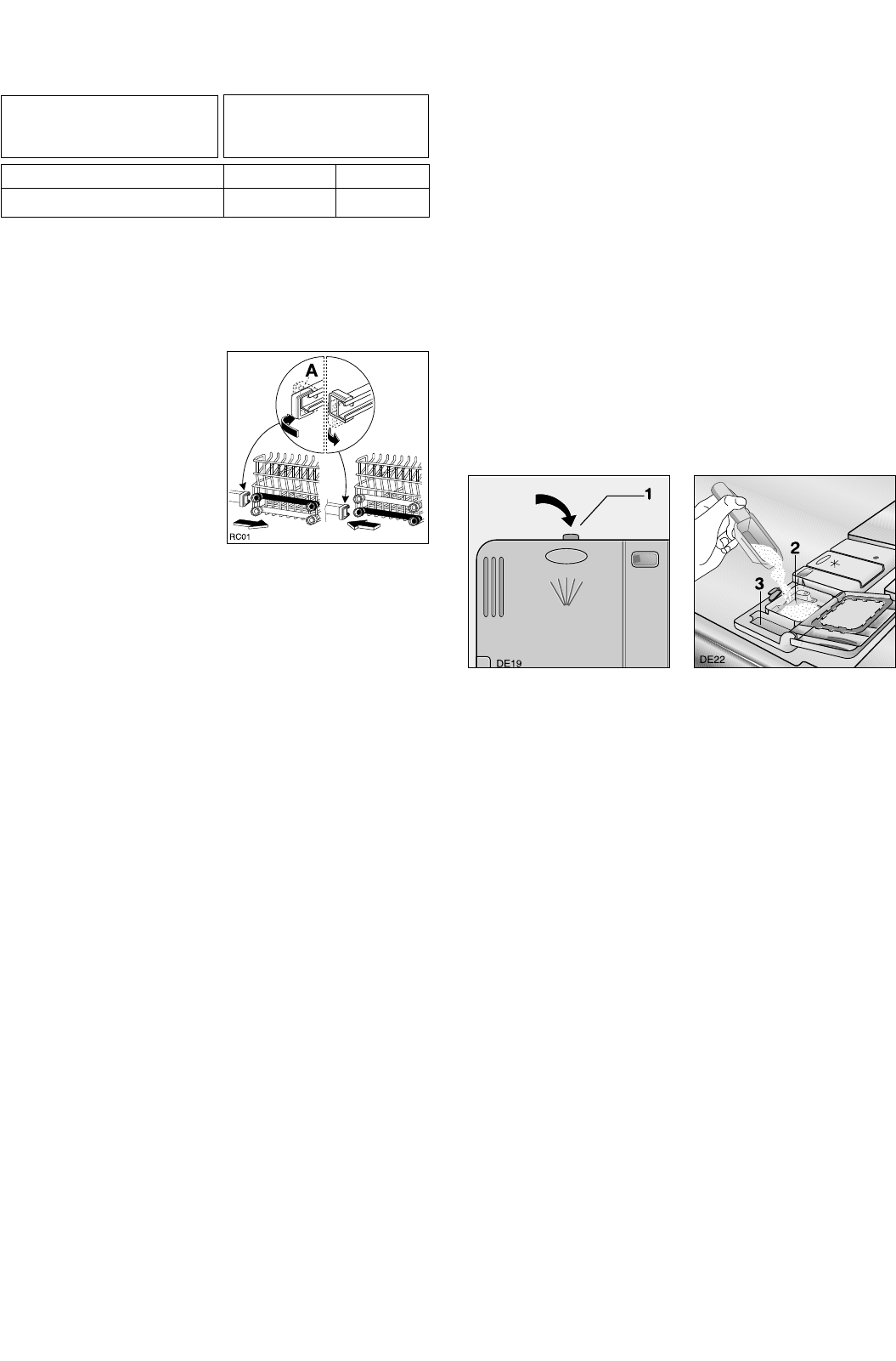 hoeveelheid afwasmiddel (5/10 g) in het kleine vakje (3) van