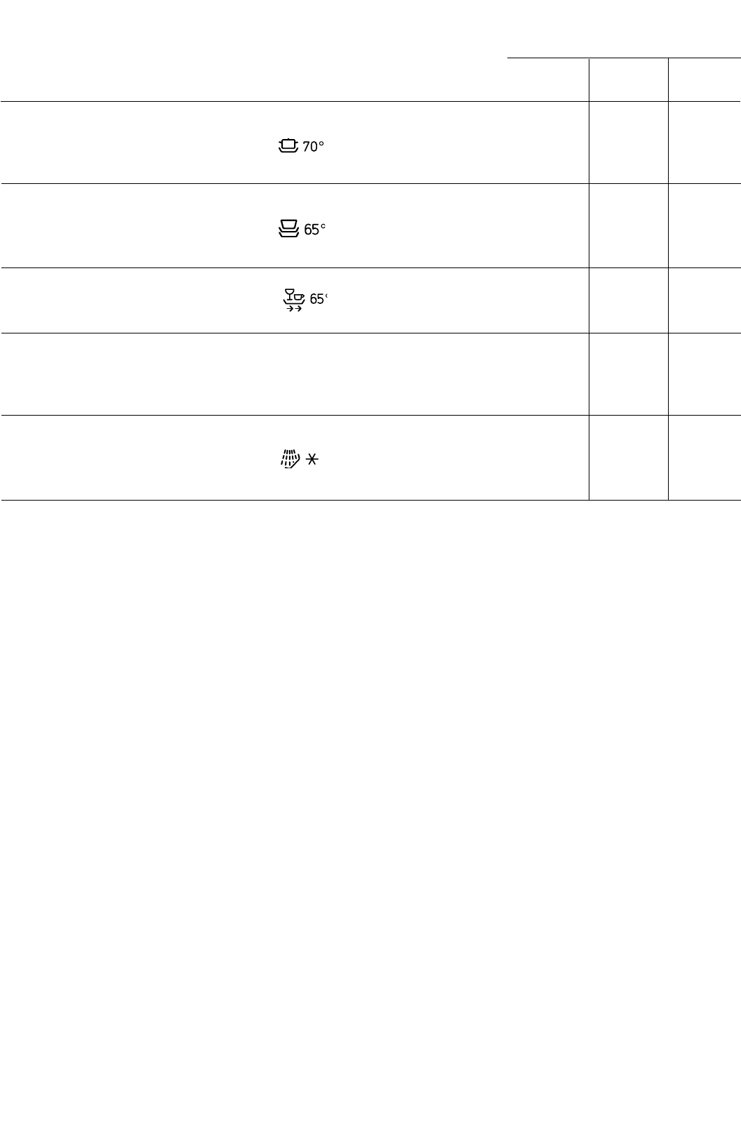 (1) Ideaal voor het afwassen van de vaat direct na het ontbijten of avondeten (vers vuil). Dit programma heeft een korte tijdsduur.
