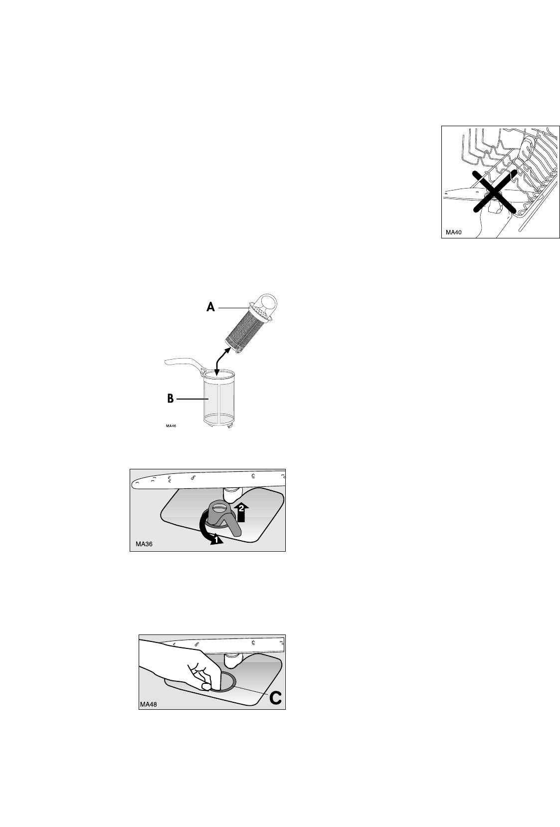 6. Flächensieb (C) aus dem Spülraumboden nehmen und auf