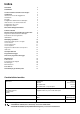 Indice Avvertenze 3 Smaltimento 3 Lavare in maniera economica ed ecologica 3 Installazione Inserimento nel vano di alloggiamento Livellamento Fissaggio Collegamento all’alimentazione dell’acqua Il tubo di carico con valvola di sicurezza Collegamento allo scarico Collegamento elettrico 4 4 4 4 4 4 5 5 Descrizione dell’apparecchiatura 6 Pannello comandi 7 Prima di usare la lavastoviglie per la prima volta Regolazione del decalcificatore dell’acqua Caricamento del sale rigenerante Il brillantante
