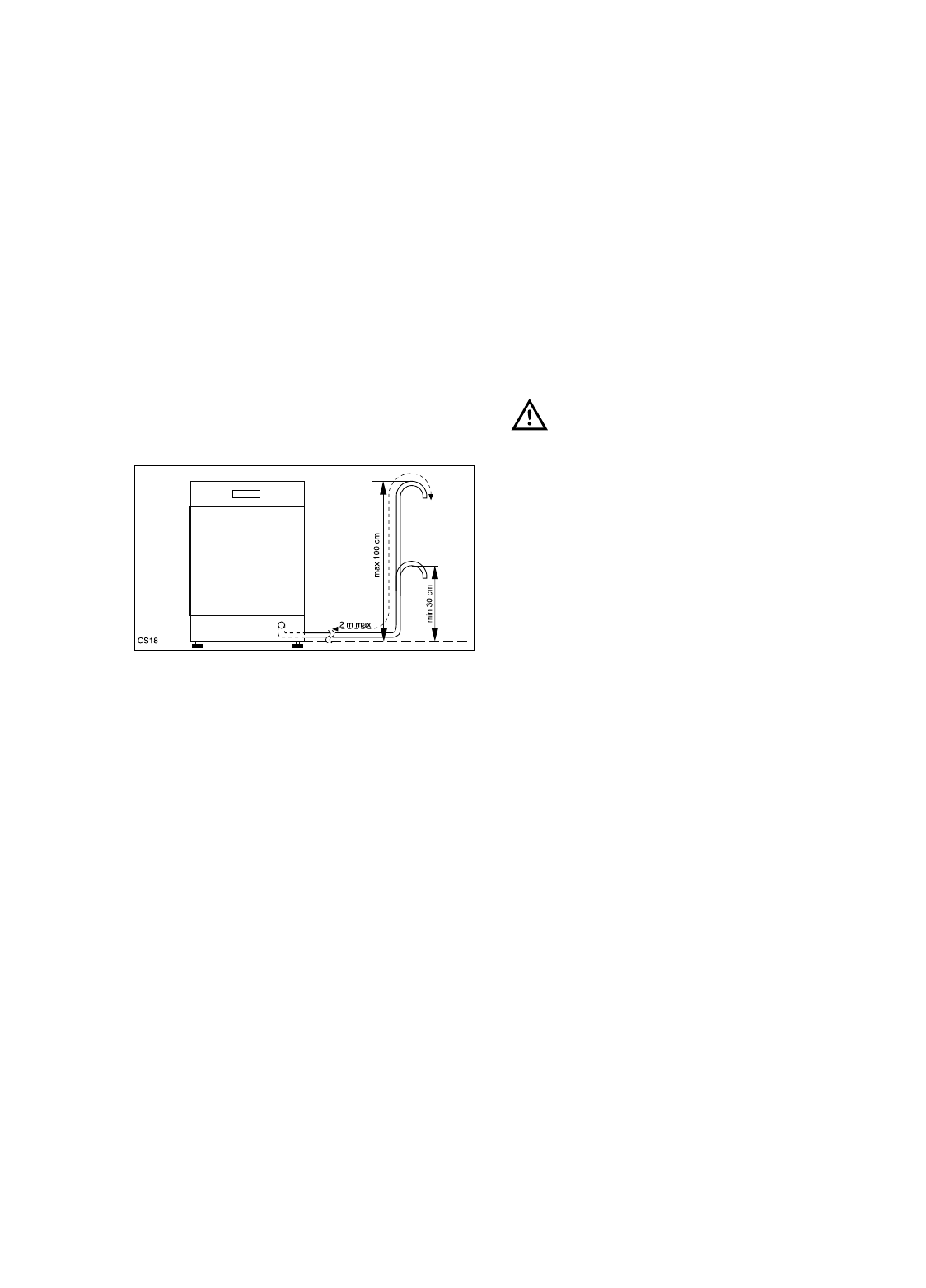 De hoogte van de afvoerslang moet tussen 30 cm (min.) en