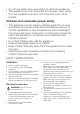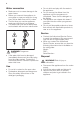 Water connection • Make sure not to cause damage to the water hoses. • Before you connect the appliance to new pipes or pipes not used for a long time, let the water flow until it is clean. • The first time you use the appliance, make sure that there is no leakage. • The water inlet hose has a safety valve and a sheath with an inner mains cable. • Do not drink and play with the water in the appliance. • Do not remove the dishes from the appliance until the programme is completed.
