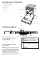 Beschrijving van het apparaat 1. Vergrendeling bovenste korf 2. Regelknop van de waterontharder 3. Schroefdop van zoutreservoir 4. Afwasmiddelbakje 5. Bedieningspaneel 6. Typeplaatje 7. Glansmiddelreservoir 8. Zeven 9. Onderste sproeiarm 10. Bovenste sproeiarm 11.