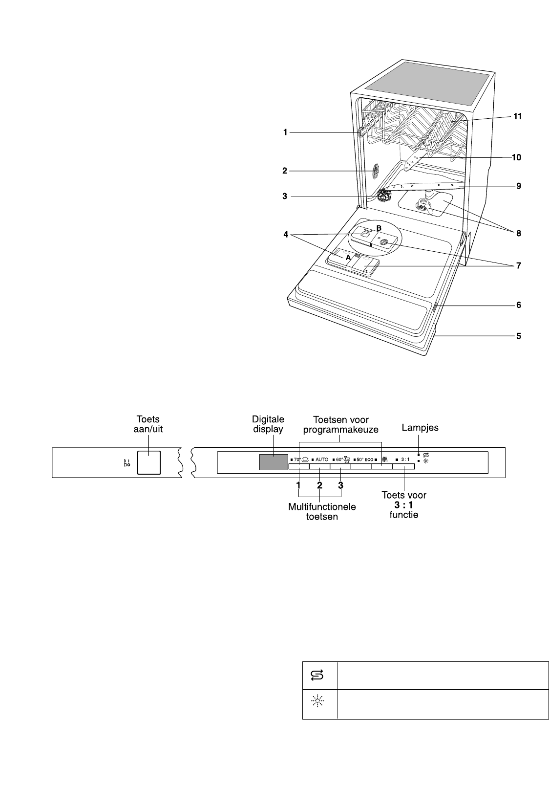 Toets voor 3 in 1 functie: De afwasmachine heeft een