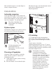 Facket har spärrar som förhindrar att lådorna ramlar ut när de dras ut helt. När lådorna ska tas ut (t.ex. för rengöring) drar du ut dem så långt det går till spärrarna, lyfter och tar ut. RÅD OCH TIPS Normala driftljud Följande ljud är normala under drift: • Ett gurglande och bubblande ljud hörs från slingorna när köldmedlet pumpas runt. • Ett surrande eller pulserande ljud hörs från kompressorn när köldmedlet pumpas runt.