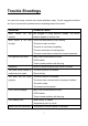 Trouble Shootings You can solve many common wine cooler problems easily. Try the suggestion below to see if you can solve the problem before contacting the service center. PROBLEM Wine cooler POSSIBLE CAUSE do not Not plugged in using different voltage. The circuit operate. breaker tripped or a blown fuse. Wine cooler is not cold Check the temperature control setting. enough. The door is open too often. The door is not closed completely. The door seal does not seal properly.