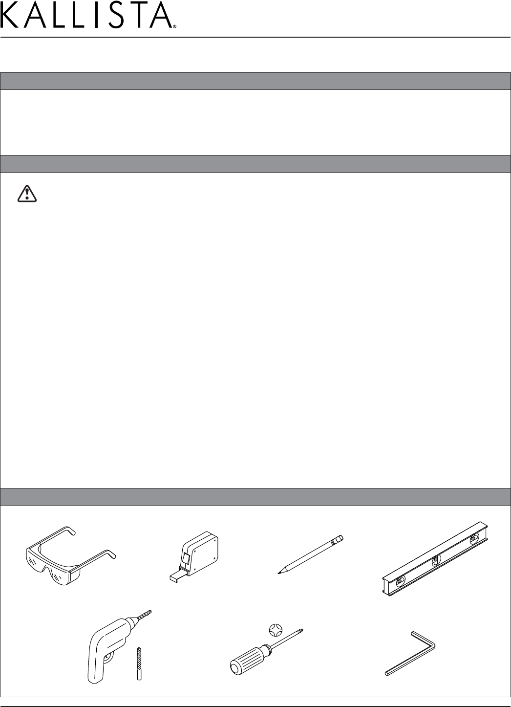 We appreciate your commitment to KALLISTA quality products. Please take a moment to review this manual