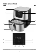 PARTS DESCRIPTION ENGLISH: 1. 2. 3. 4. 5. 6. 7. 8. Touchscreen digital control panel Food basket Food basket holder Handle Food basket release button with safety cover Stainless steel finish Air inlet ring Temperature increase button 9. 10. 11. 12. 13. 14. Temperature decrease button Start/pause button Power button Mode selection button Time decrease button Time increase button 8.