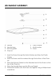 MONTAJE DE ASA DE LA TAPA A B C D E F G A. B. C. D. Asa Base del asa Junta de silicona Tapa de vidrio E. Arandela de plástico F. Arandela de metal G. Tornillo 1. Inserte el tornillo a través de la arandela de metal y luego la arandela de plástico. 2. Inserte el tornillo y las arandelas a través de la parte inferior de la tapa de vidrio. 3. Coloque la junta de silicona en el extremo roscado del tornillo en la parte superior de la tapa de vidrio. 4.