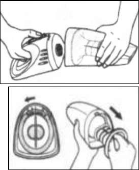 holding it by its handle. Switch it on by pressing the ON/OFF switch.