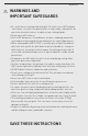 WARNINGS WARNINGS AND IMPORTANT SAFEGUARDS • Be careful when removing food from grill. All surfaces are HOT and may cause burns. Use protective gloves/mitts or long, sturdy cooking tools for protection from hot surfaces or splatter from cooking liquids. • Do not touch HOT surfaces. • Grill is HOT during use. To avoid burns, keep face and body away from vents and when opening lid. Steam and hot air are expelled during use.