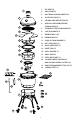 1 2 1. TOP VENT (1) 2. GRILL DOME (1) 3. HALF MOON COOKING GRATES (2) 4. ACCESSORY RACK (1) 5. CERAMIC HEAT DEFLECTORS (2) 6. DIVIDE & CONQUER® FLEXIBLE COOKING RACK (1) 3 4 5 7. STAINLESS STEEL FIREBOX RING (1) 8. CAST IRON GRATE (1) 9. FIREBOX WALLS (5) 10. FIREBOX BASE (1) 6 11. SLIDE-OUT ASH DRAWER (1) 12. LEFT SIDE SHELF (1) 13. RIGHT SIDE SHELF (1) 7 14. GRATE TOOL (1) 8 15. GRILL GRIPPER (1) 16. 9 GRILL BASE (1) 17. STEEL WIRE CART (1) 18.