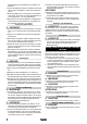 piederumi un rezerves daļas garantē drošu un nevainojamu ierīces darbību. Transportēšana 몇 UZMANĪBU 몇 ATSARGIAI ● Apsauginiai įtaisai garantuoja jūsų saugą. Apsauginius įtaisus modifikuoti ar apeiti draudžiama. Elektros smūgio pavojus ● Pirms transportēšanas izslēdziet motoru. Piestipriniet ierīci, ievērojot tās svaru, skatiet lietošanas instrukcijas nodaļu Tehniskie dati.