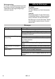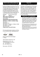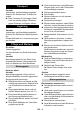 Varstvo okolja Upravljalni elementi Embalaža je primerna za recikliranje. Prosimo, da embalaže ne odvržete med gospodinjske odpadke, temveč jo odložite v zbiralnik za ponovno obdelavo. Stare naprave vsebujejo dragocene reciklirne materiale, ki jih je treba odvajati za ponovno uporabo. Baterije, olje in podobne snovi ne smejo priti v okolje. Zato stare naprave zavrzite v ustrezne zbiralne sisteme. Opozorila k sestavinam (REACH) Aktualne informacije o sestavinah najdete na: www.kaercher.