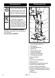 Ochrana životního prostředí Ovládací prvky Obalové materiály jsou recyklovatelné. Obal nezahazujte do domovního odpadu, ale odevzdejte jej k opětovnému zužitkování. Přístroj je vyroben z hodnotných recyklovatelných materiálů, které se dají dobře znovu využít. Baterie, olej a podobné látky se nesmějí dostat do okolního prostředí. Použitá zařízení proto odevzdejte na příslušných sběrných místech Informace o obsažených látkách (REACH) Aktuální informace o obsažených látkách naleznete na adrese: www.kaercher.