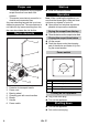 在您第一次使用您的设备前,请 先阅读并遵守本操作说明书原 件,为日后使用或其他所有者使用方便请 妥善保管本说明书。 – 不遵守本说明书和安全提示会导致机械 损坏以及操作者和其他人员人身危险。 – 如有运输损坏请立即通知零售商。 安全操作说明 危险 – – – 环境保护 包装材料可以回收利用。请不要 把包装材料与普通垃圾放在一起 处理,而应妥善安排回收。 – – 旧的设备中含有宝贵的可再利用 的材料,应加以回收利用。电 池、油以及类似物质不可以进入 自然环境。请通过适当的收集系 统处理您的旧设备。 – 内部材料提示 (REACH) 最新的内部材料信息请您在如下链接中查 找: http://www.karcher.de/de/unternehmen/ umweltschutz/REACH.