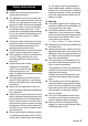 Operation 몇 Danger The trigger gun is subjected to a recoil force when the water jet is discharged. Make sure that you have a firm footing and are also holding the trigger gun and spray lance firmly. Î Unlock the lever on the trigger gun. Î Pull on the lever of the trigger gun; the device will switch on. Note: Release the lever of the trigger gun; the device will switch off again. High pressure remains in the system. Spray lance with pressure regulation Carrying out the most common cleaning tasks.
