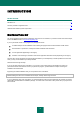 INTRODUCTION IN THIS SECTION: Distribution kit .................................................................................................................................................................... 9 Services provided for registered users .............................................................................................................................. 9 Hardware and software system requirements ........................................................................................