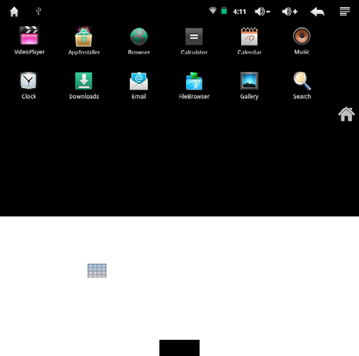 The Applications menu screen holds all the applications on the device. Applications that you download and install from the web are also added to