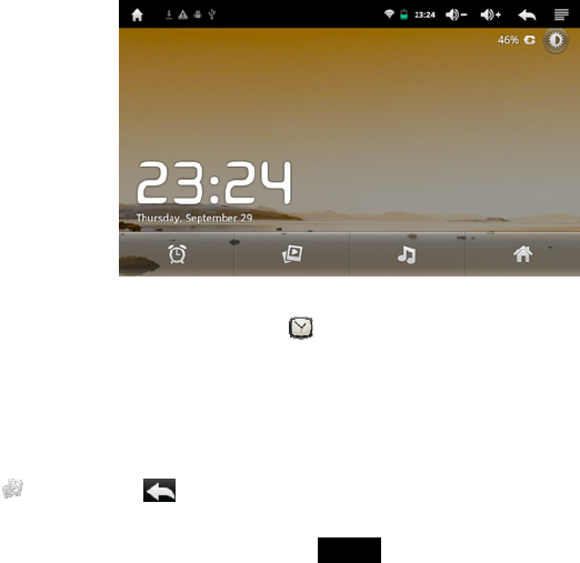 y In addition to display date and time, the clock this application can also engage the slide and music playing, and also can set the alarm.