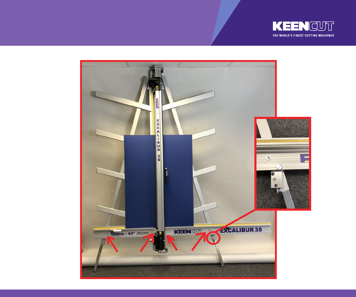 1. Slacken the two screws (A) joining the squaring arm to the two legs.