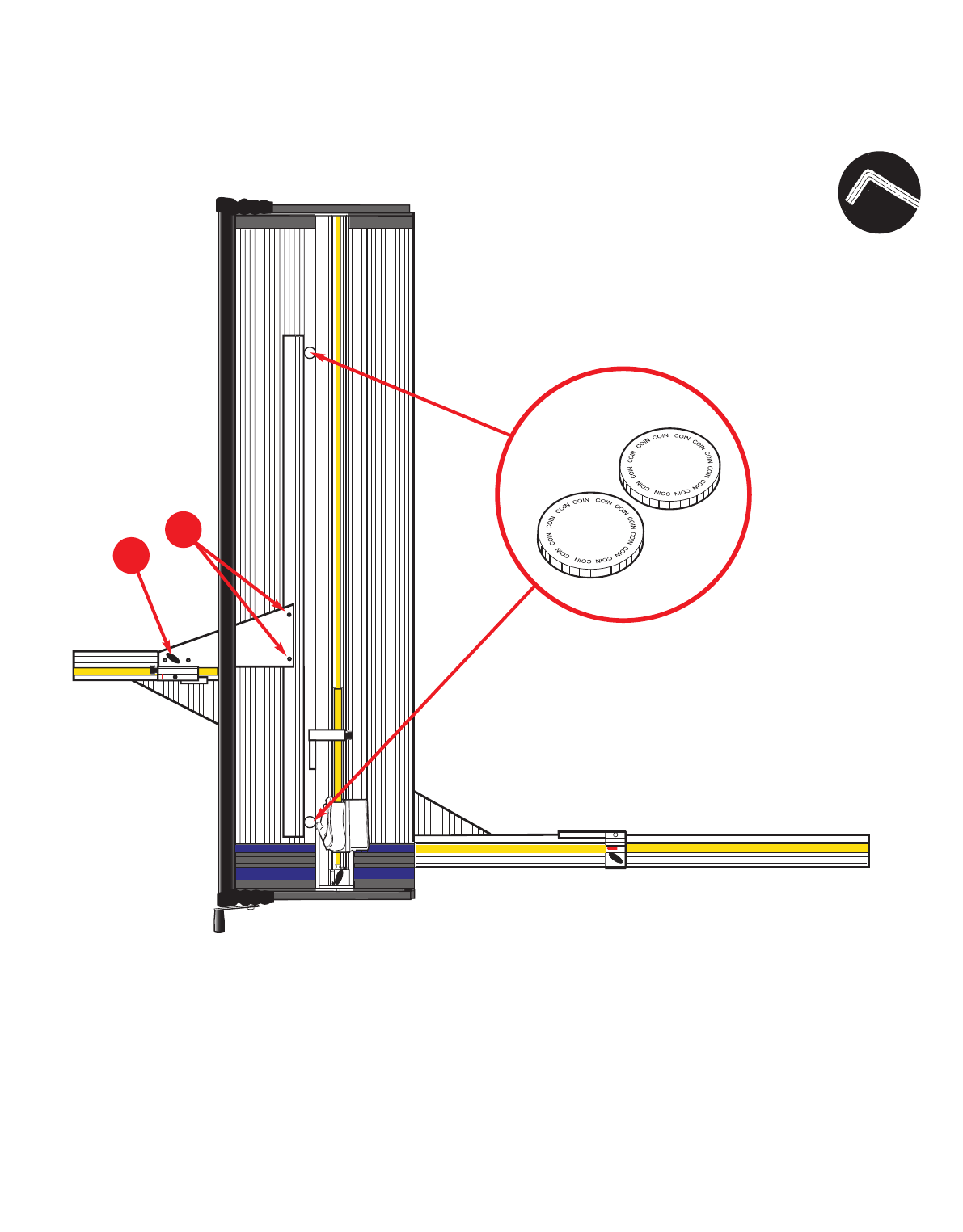 1 Place the coins as shown, one near the top of the Matguide T-Bar and the other near the bottom.