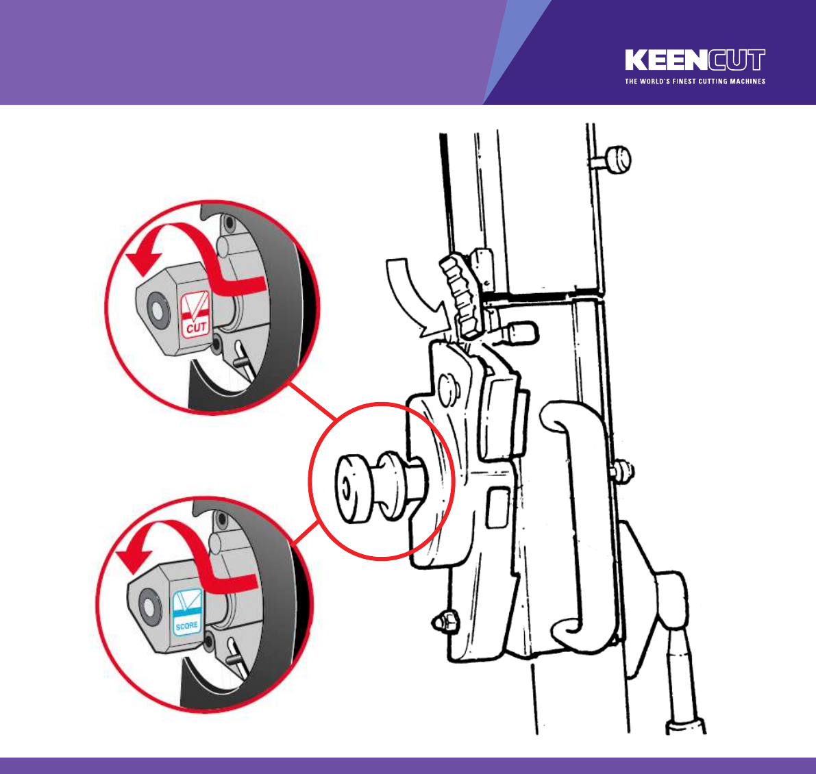 2. The indicator label seen in the cutter guard window shows which cutter is active.