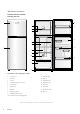 Top freezer features KTB2302, KTB2502, KTB2802, KTB3402, KTB3702 1 18 3 17 4 5 16 6 7 2 15 8 9 10 14 11 12 13 The details of the refrigerator feature: 1 Freezer Door 11 Humidity Slide 2 Food Door 12 Crisper 3 Ice Tray 13 Adjustable Feet 4 Temperature Control (Freezer) 14 Bottle Door Bin 5 Freezer Shelf 15 Door Bins 6 Light Switch 16 Slide Rails 7 Multiflow 17 Freezer Door Bin 8 Refrigerator Light 18 Gaskets 9 Adjustable Glass Shelves 10 Temperature Control (Refrigerator)
