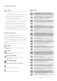 Safety precautions caution Prior to Operation Preparing for operation 1 Contact an installation specialist for installation. 2 Plug in the power plug properly. 3 Do not use a damaged or non-standard power cord. 4 Do not share the same outlet with other appliances. Do not clean the air conditioner with water. Water may enter the unit and degrade the insulation. It may cause an electric shock. 5 Do not use an extension cord. Ventilate the room well when used together with a stove, etc.