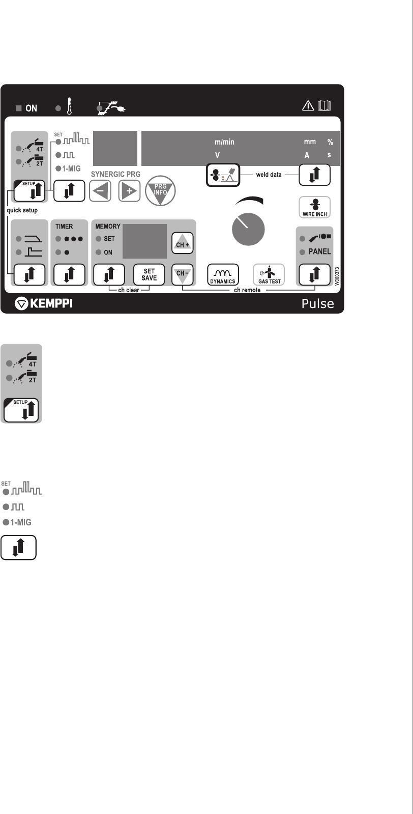 Synergic MIG/MAG-lassen (1-MIG): bij MIG-lassen bepaalt de draadaanvoersnelheid de waarden