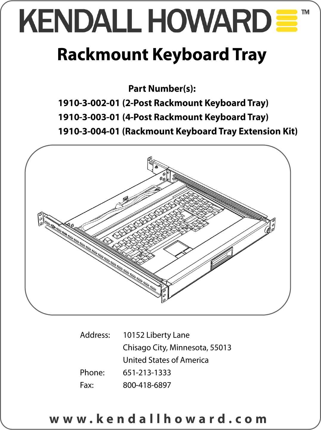 QTY 1 2-Post Rackmount Keyboard Tray Assembly QTY 10 10-32 Cross Head Screws QTY 2 Extension L Brackets QTY 10 10-32 Cross Head Screws Screw Driver *Only for 4-Post Rackmount Keyboard Tray and Extension Kit* a) Pull the keyboard forward to provide more room in the back of the tray. b) Using the included 10-32 Cross Head Screws, secure the Extension L Bracket to the rear of the keyboard tray as shown. c) Repeat on the other side.