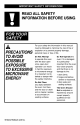 Safety Instructions Precautions to Avoid Possible Exposure to Excessive Microwave Energy ...2 Important Safety Instructions .... 4-7 Grounding Instructions .......... 8 Care and Maintenance Cleaning the Microwave ...... Light Bulb Replacement ...... The Vent Fan and Grease Fitter Charcoal Filter ................ Operation Important Parts of Your Microwave ................ Quick Start--Controls ....... Operating Instructions ....... Microwave Terms ............. 24 25 . .