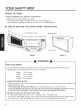 YOUR SAFETY FIRST ¢ MAKE SURE YOU HAVE ENOUGH SPACE AND SUPPORT. - Mount the oven against a flat, vertical wall, so that it is supported by the wall. The wall should be constructed of minimum 2" x 4" wood studding and 3/8" thick drywall or plaster /lath. - ATTACH AT LEAST ONE of the two lag screws supporting the oven to a vertical, 2" x 4" wall stud. - DO NOT mount the microwave oven to an island or peninsula cabinet. - BE SURE the upper cabinet and rear wall structures are able to support 150 Ibs.