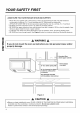 YOUR SAFETY FIRST • MAKE SURE YOU HAVE ENOUGH SPACE AND SUPPORT. - Mount the oven against a flat, vertical wall, so that it is supported by the wall. The wall should be constructed of minimum 2" x 4" wood studding and 3/8" thick drywall or plaster/lath. - ATTACH AT LEAST ONE of the two lag screws supporting the oven to a vertical, 2" x 4" wall stud. - DO NOT mount the microwave oven to an island or peninsula cabinet. - BE SURE the upper cabinet and rear wall structures are able to support 150 Ibs.