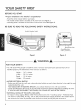 YOUR SAFETY FIRST ¢ MAKE SURE YOU HAVE ENOUGH SPACE AND SUPPORT. - Mount the oven against a flat, vertical wall, so that it is supported by the wall. The wall should be constructed of minimum 2" x 4" wood studding and 3/8" thick drywall or plaster /lath. - ATTACH AT LEAST ONE of the two lag screws supporting the oven to a vertical, 2" x 4" wall stud. - DO NOT mount the microwave oven to an island or peninsula cabinet. - BE SURE the upper cabinet and rear wall structures are able to support 150 Ibs.