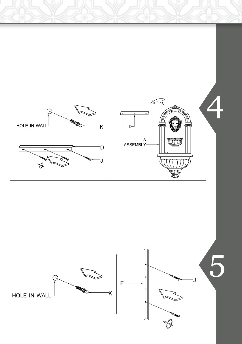 insert (2) anchors (J). (If fastening to studs, skip this step.)